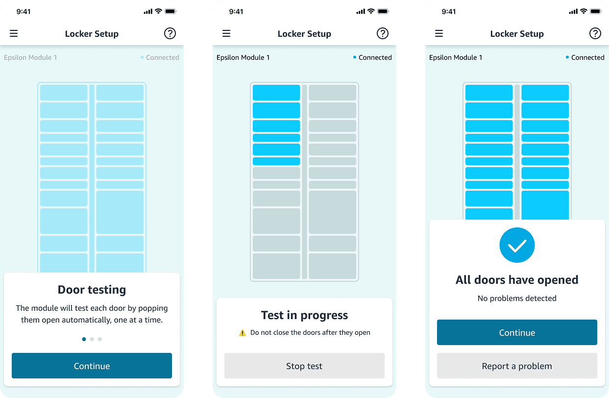 This meant that our technicians would need a way to connect to these new lockers with their phones in order to perform first-time setup and testing. I was tasked with designing this experience.